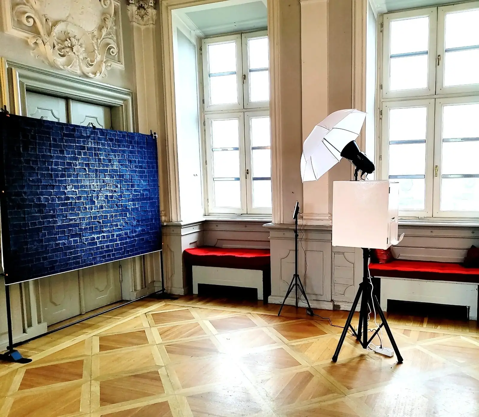 Wir wählen gemeinsam Layout, ggf. Hintergrund und Requisiten-Style. Auf Wunsch integrieren wir Namen/Datum im Design.